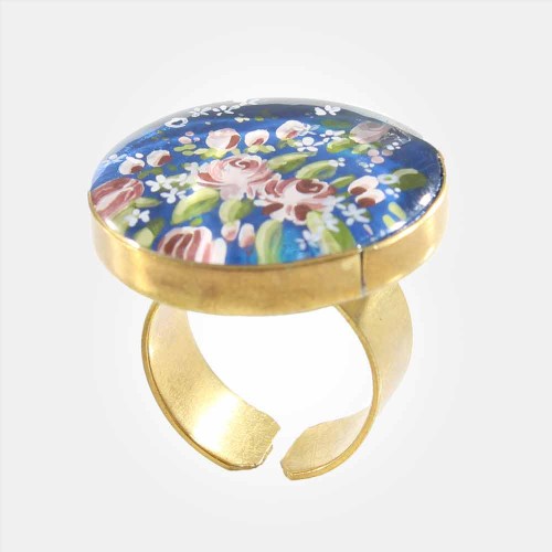 Hand Painted Persian Flowers Ring