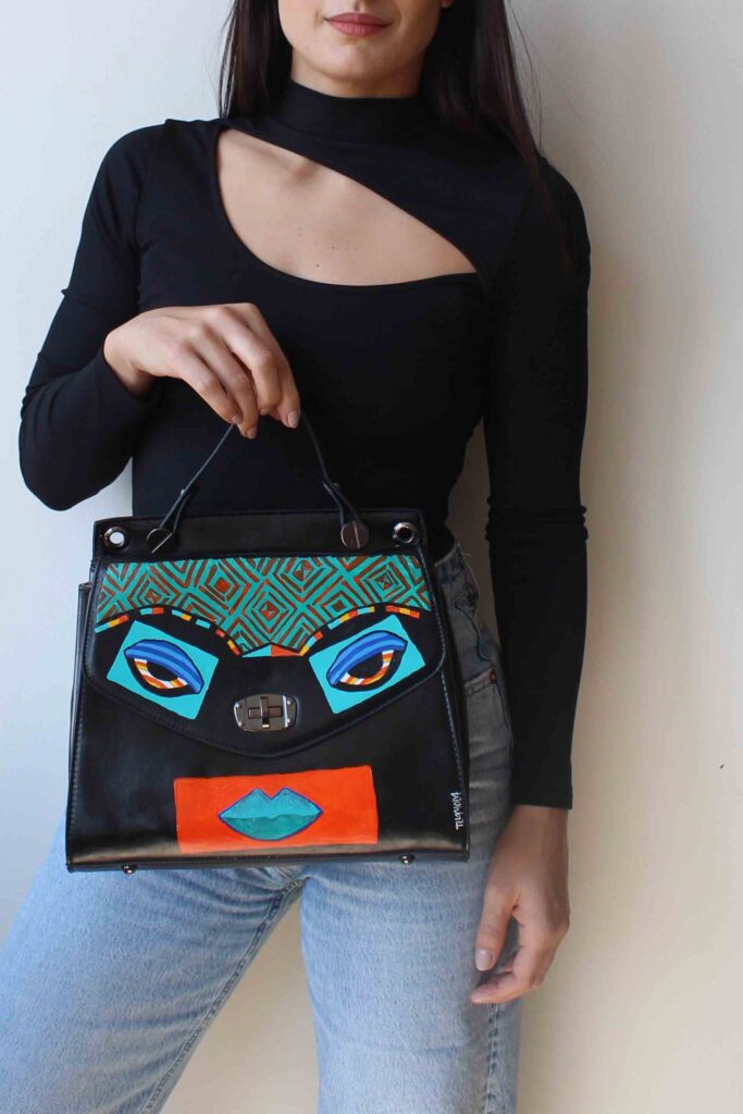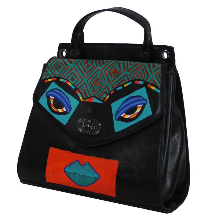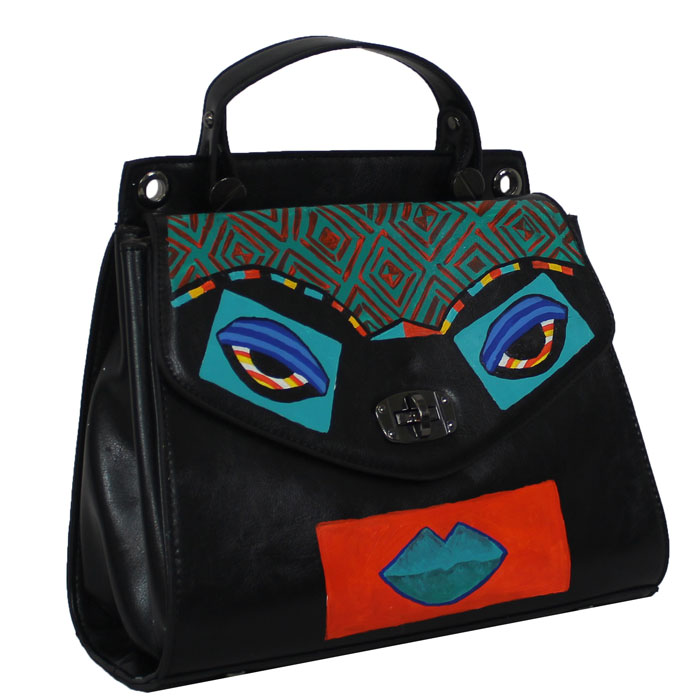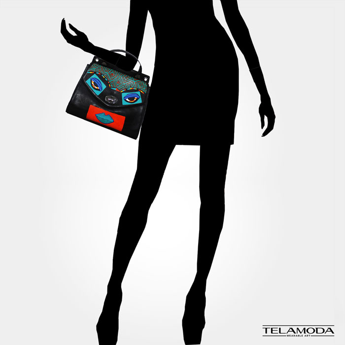 This art to wear hand painted bag has the guaranteed seal of one of one Telamoda wearable art hand painted bag;