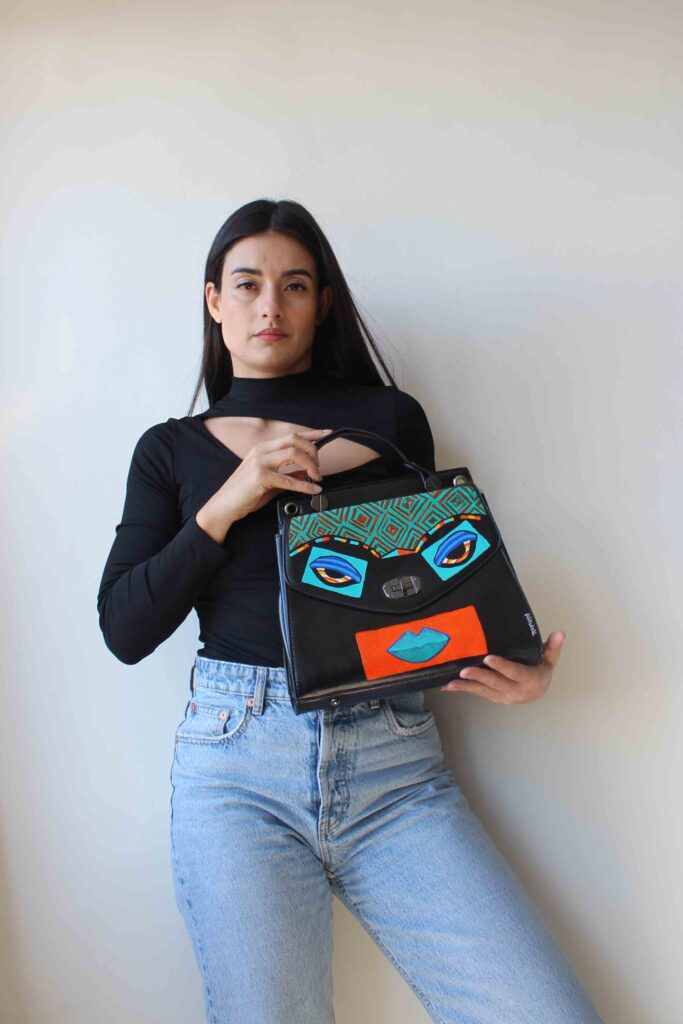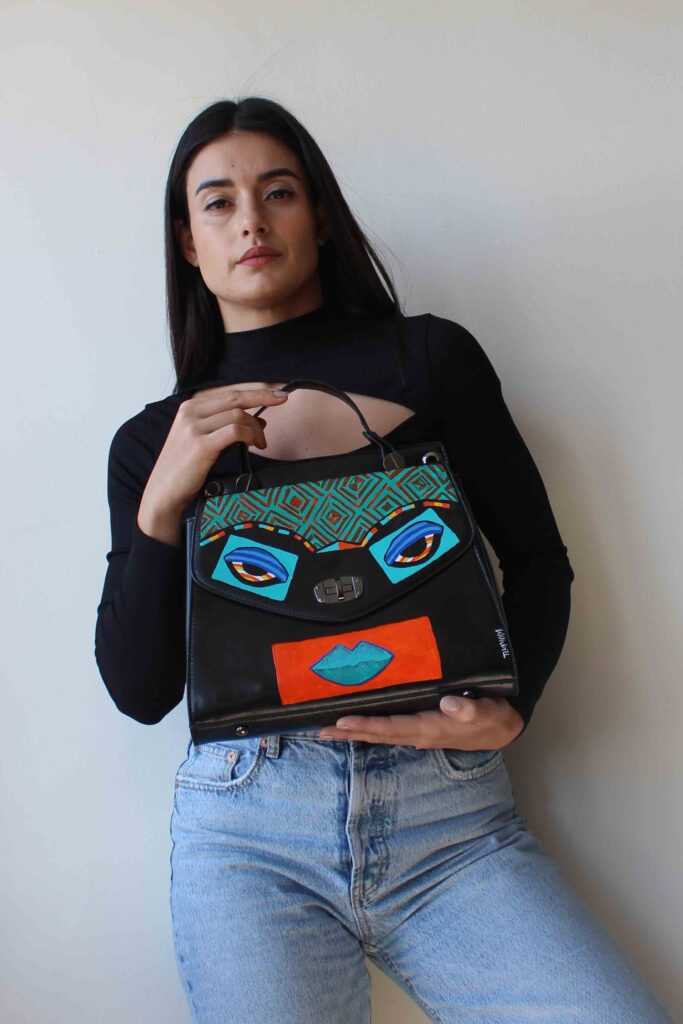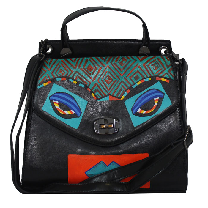 Acrylic Paint on leather bag and sealed with our special sealant
