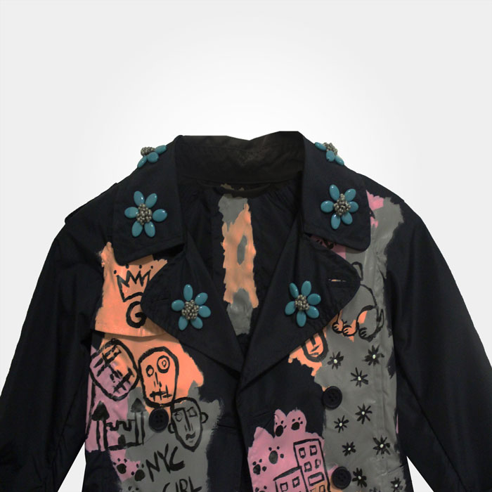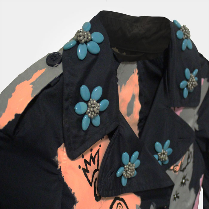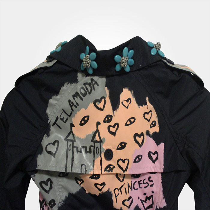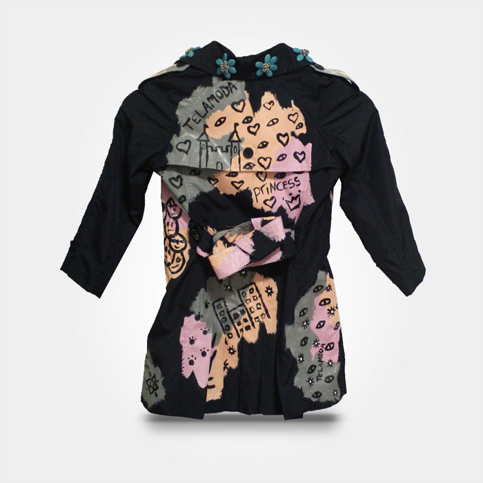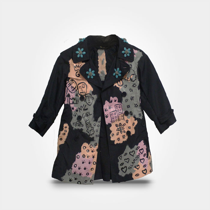 This product has the guaranteed seal of one of one Telamoda wearable art hand painted Kid’s trench coat