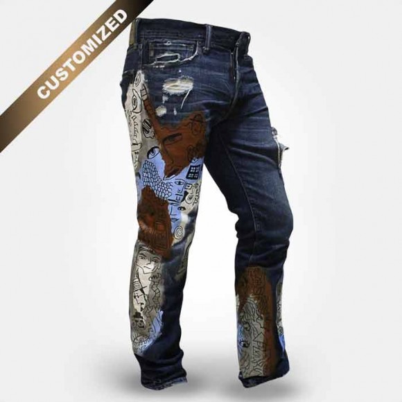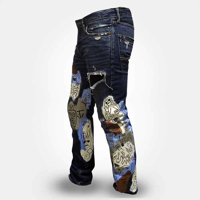 This product has the guaranteed seal of one of one Telamoda wearable art hand painted jeans