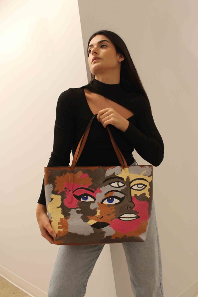 Tarik Mendes creates paintings, drawings and sculptures. By emphasizing aesthetics, Mendes seduces the viewer into a world of ongoing equilibrium and the interval that articulates the good and the ugly of daily life. His paintings sometimes mimic ancient African and Egyptian culture mixed with contemporary themes. His works are notable for their textured finish and colorful nature. This is of great importance and bears witness to great craftsmanship. By applying abstraction, he considers making art a craft which is executed using clear formal rules and which should always refer to social reality.His works don’t always reference recognizable forms. The results are deconstructed to the extent that meaning is shifted and possible interpretation becomes multifaceted. Tarik Mendes currently lives and works in New York City.Tarik is a extremely talented artists and has created the most amazing hand painted bags and accessories for Telamoda. He is a very versatile artist and his hand painted wearable art pieces varies from bags to belts.