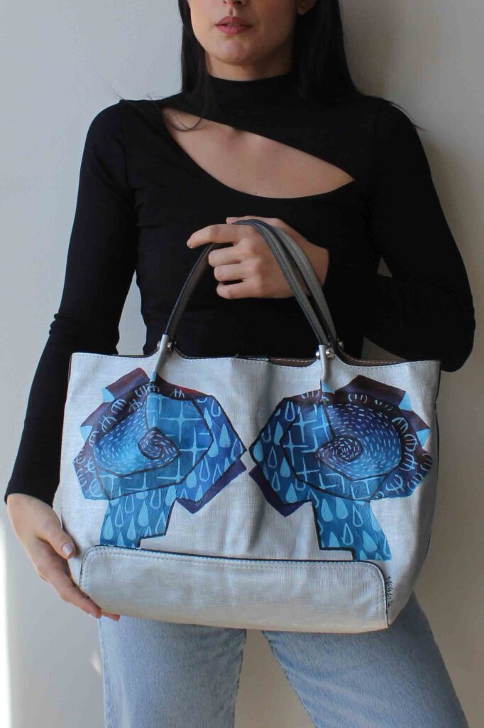 This product has the guaranteed seal of one of one Telamoda wearable art hand painted bag;