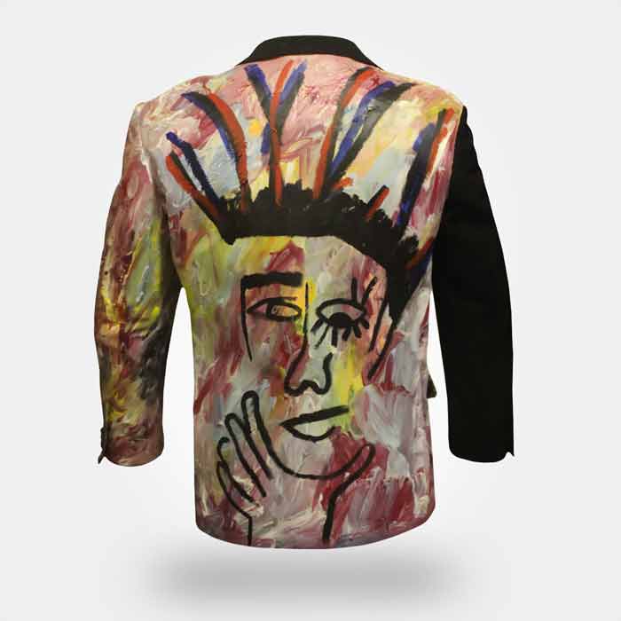 This product has the guaranteed seal of one of one Telamoda wearable art hand painted tuxedo jacket